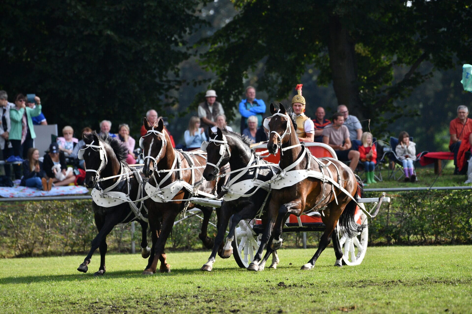 Spannend wird es bei der Springquadrille , bei der Präzision und Teamarbeit auf höchstem Niveau demonstriert wird. Und zum Abschluss wird es noch einmal spektakulär: Die Römerwagen donnern mit atemberaubender Geschwindigkeit über den Platz und sorgen mit rasanten Kurven für Gänsehaut und echte Action