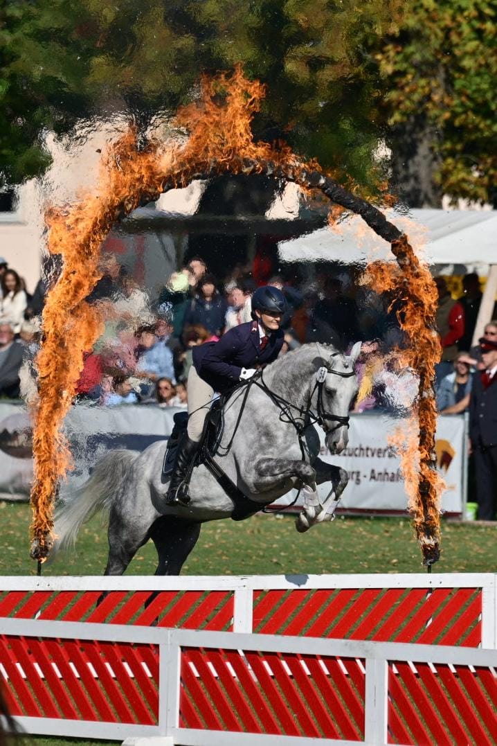 Die über 230-jährige Tradition des Gestüts wird durch die große Dressurquadrille auf besondere Weise lebendig. Die Reiter tragen historische Uniformen der preußischen Regimenter – Garde du Corps, Zieten-Husaren, Dragoner und Ulanen – und entführen die Zuschauer in eine längst vergangene Zeit. Gleichzeitig richten wir den Blick auch in die Zukunft: Unsere Junghengste und die Fohlen des Jahrgangs repräsentieren die nächste Generation und stehen für die kontinuierliche Weiterentwicklung der Pferdezucht. Natürlich dürfen auch die Neustädter Vererber , die Väter des züchterischen Erfolgs, nicht fehlen. Sie treten mit kraftvollen und eleganten Auftritten ins Rampenlicht und erobern die Herzen der Zuschauer. Der größte Schatz des Gestüts – die Zuchtstuten – präsentiert sich in verschiedenen Anspannungen vor wertvollen Kutschen unserer historischen Sammlung.