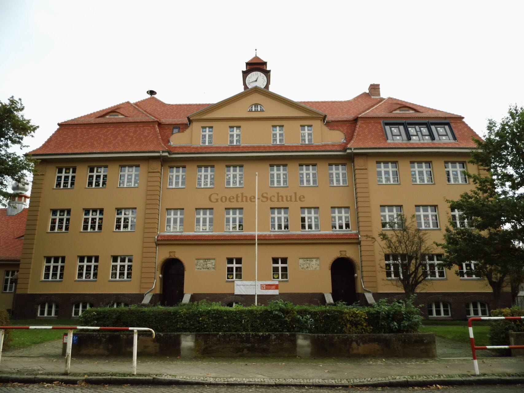 Am Tag der Städtebauförderung lädt die Goethe-Grundschule in Kyritz zum Tag der offenen Tür ein. Das imposante Schulgebäude, 1912/13 errichtet und eines der größten Gebäude der Stadt, blickt auf eine bewegte Geschichte zurück. Zuerst als Volks- und Mittelschule genutzt, diente es von 1942 bis April 1945 als Lazarett, bevor im August 1945 der Schulbetrieb wieder aufgenommen wurde. Anlässlich des 200. Geburtstags von Johann Wolfgang von Goethe erhielt die Schule 1949 ihren heutigen Namen. Nach zeitweiligem Leerstand wird das Gebäude jetzt als Grundschule der Stadt genutzt. Von 2011 bis 2018 wurde das denkmalgeschützte Gebäude mit Unterstützung der Städtebauförderung umfassend saniert. Rund 3 Millionen Euro flossen in die Modernisierung und den Erhalt dieses bedeutenden Einzeldenkmals – ein wichtiger Beitrag zur Sicherung des Schulstandorts. Bereits 2009 wurde die Schule durch einen neu angelegten Sportplatz ergänzt. Der Tag der offenen Tür bietet Gelegenheit, die Geschichte und die gelungene Sanierung dieses traditionsreichen Hauses zu entdecken.