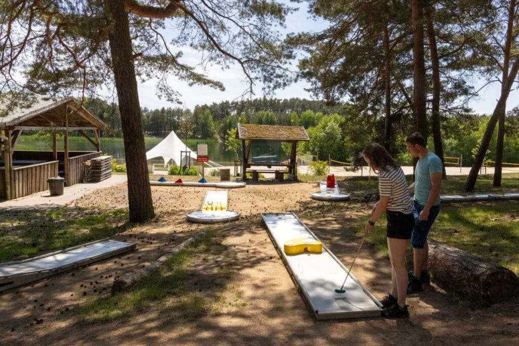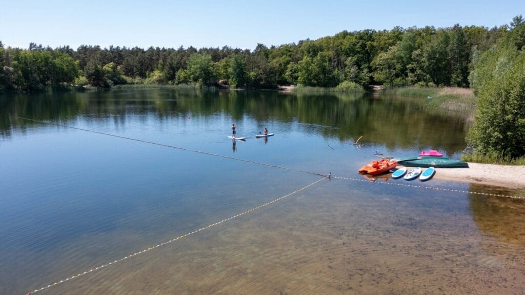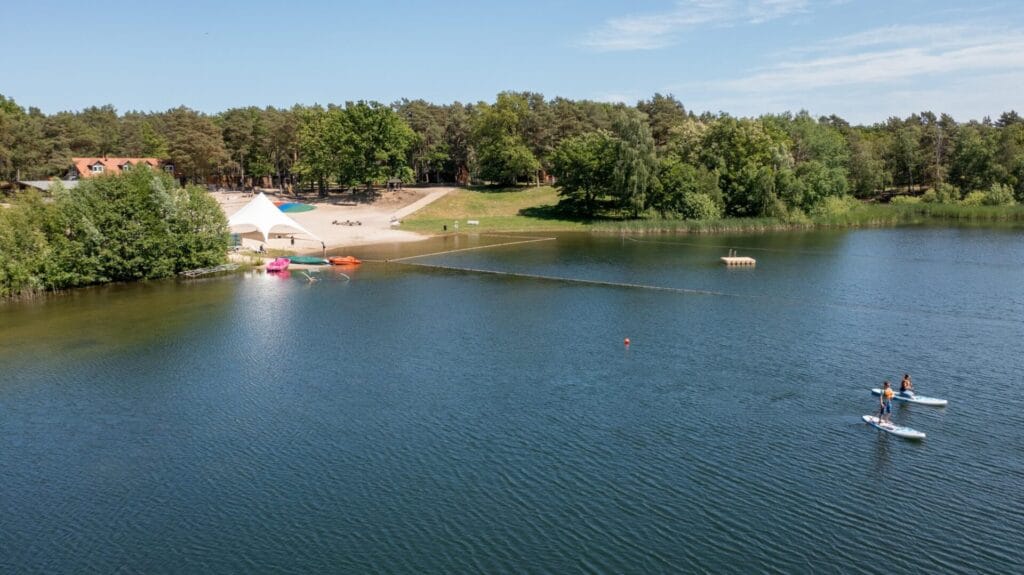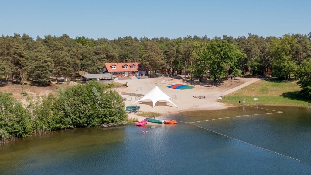 Am Friedensteich ist Wasserspaß garantiert: Verschiedene Stationen bieten Action in und auf dem Wasser. An Land sorgen Minigolf, Niedrigseilgarten, Hüpfkissen und Matschspielplatz für Abwechslung. Sportfans freuen sich über ein Beachsoccerfeld und acht Beachvolleyballfelder.